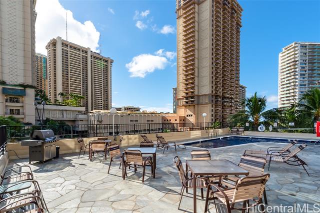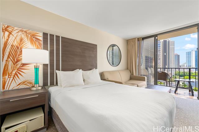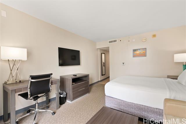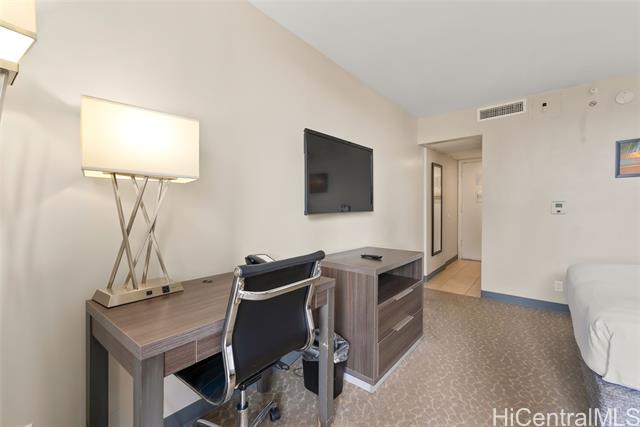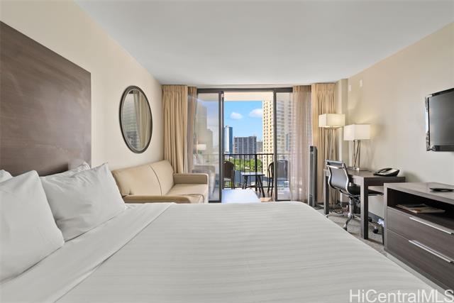A turnkey, legal short-term rental studio located at the gateway of Waikiki. This fully furnished, high-floor unit is ideal for investors looking for an income-producing property or a personal vacation retreat. Facing quiet side of building and pleasant mountain and city views from spacious lanai. Just one block from the Beach, Hilton Lagoon and the Harbor. A short stroll to Ala Moana Shopping Center and Hawaii Convention Center. Waikiki Trolley and public bus stops are located directly in front of the building. Hotel amenities are pool with view, 24-hour front desk, security, on-site laundry facilities, and world famous IHOP restaurant is located in the lobby.