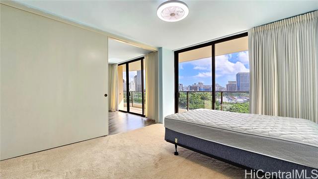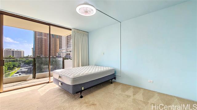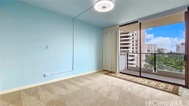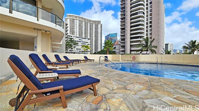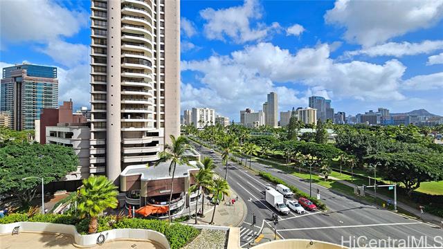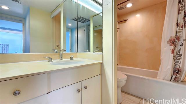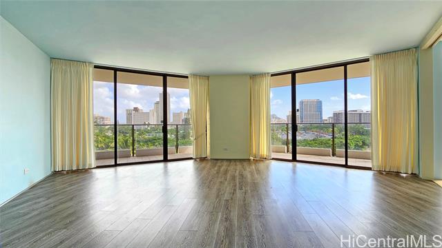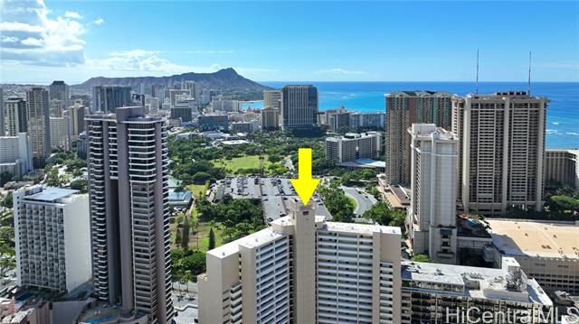 Trustees finally obtained probate approval after 6 months of waiting. Rarely available & extra spacious 1,331 sq ft "00" 2 bedroom 2 bath with 226 sq ft lanai. Lease extended to 2069. Enjoy the outstanding view overlooking the open area of Fort DeRussy and Diamond Head. Desirable split bedroom floor plan (bedroom either side of living room, both with entrance to lanai & view). Renovated with popcorn ceiling removed, laminate floor (2021), carpet (2024), kitchen counter top (2020), stainless steel induction range (2021) washer/dryer (2022), cellular shades (2024), toilet (2021). Primary bedroom has a walk-in closet. Close to Waikiki beach and Hilton Hawaiian Village and the weekly fireworks show. Island Country Mart is conveniently located on the ground level. Covered secured parking stall and 2 storage locker located just outside unit door. Large BBQ area and pool area. Pet friendly.