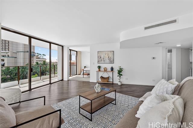 A MOST EXTRAORDINARY LUXURIOUS CONDO-PRICED TO SELL! Long 44-year LAND LEASE through 11/30/2069. Enjoy gorgeous open panoramic 7th-floor views over Fort DeRussy, Diamond Head, and the Hilton Hawaiian Village from the living Room and bedrooms! Spacious 2-bed/2-bath with 1,331 sq. ft. interior+huge 226 sq. ft. wrap around lanai giving living room, and each bedroom their own private exterior lanai (1,557 total sq.ft.). ALL NEW kitchen cabinets, quartz countertops, new stainless-steel appliances, renovated bathrooms, washer/dryer, and vinyl plank flooring. Convenient new ABC Store on the ground level, restaurants galore downstairs, close to the swimming beach & lagoon at Hilton Hawaiian Village, & a short bus ride to Ala Moana Beach Park and mall. There is more to love about this condo and location - it includes one covered, secured parking stall (Level 3), swimming pool, and large BBQ area w/sundeck. Condo is vacant and easy to show on short notice. Building allows 90 days-or-longer rentals and two pets. $2,081.86/mo. HOA fee; plus $1,361.15/mo lease rent, plus prop tax $196/mo; plus required HO6 condo insurance.