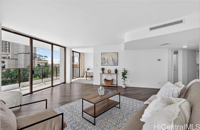 A MOST EXTRAORDINARY LUXURIOUS CONDO-PRICED TO SELL! Long 44-year LAND LEASE through 11/30/2069. Enjoy gorgeous open panoramic 7th-floor views over Fort DeRussy, Diamond Head, and the Hilton Hawaiian Village from the living Room and bedrooms! Spacious 2-bed/2-bath with 1,331 sq. ft. interior+huge 226 sq. ft. wrap around lanai giving living room, and each bedroom their own private exterior lanai (1,557 total sq.ft.). ALL NEW kitchen cabinets, quartz countertops, new stainless-steel appliances, renovated bathrooms, washer/dryer, and vinyl plank flooring. Convenient new ABC Store on the ground level, restaurants galore downstairs, close to the swimming beach & lagoon at Hilton Hawaiian Village, & a short bus ride to Ala Moana Beach Park and mall. There is more to love about this condo and location - it includes one covered, secured parking stall (Level 3), swimming pool, and large BBQ area w/sundeck. Condo is vacant and easy to show on short notice. Building allows 90 days-or-longer rentals and two pets. $2,081.86/mo. HOA fee; plus $1,361.15/mo lease rent, plus prop tax $196/mo; plus required HO6 condo insurance.