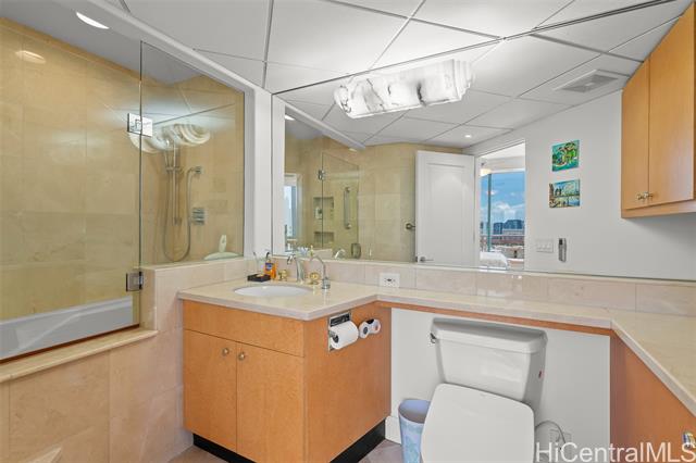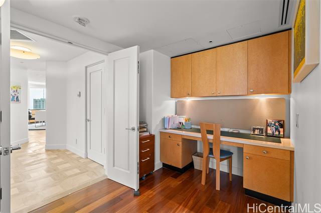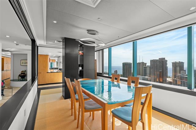 A hidden gem offers panoramic Ocean, Mountain and DH View from 3 HUGH lanais. This is a custom designed unit by an award winning architect, Jeff Long, reflecting his tastes and class throughout the interior - A very luxurious yet functional floor plan with 2 bedrooms and 2 & 1 /2 bathrooms penthouse including a unique multi-purposed Tatami room, which can be transformed as a Den, Additional family room or a 3rd bedroom for your personal needs. Enjoy a Single Family home like space with an easy acess to Waikiki and Ala Moana shopping center.