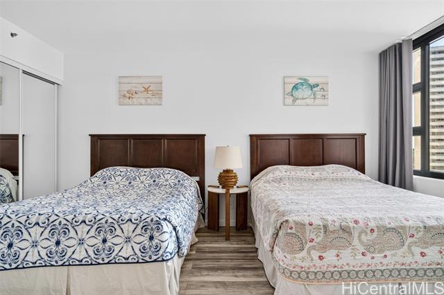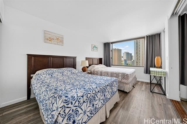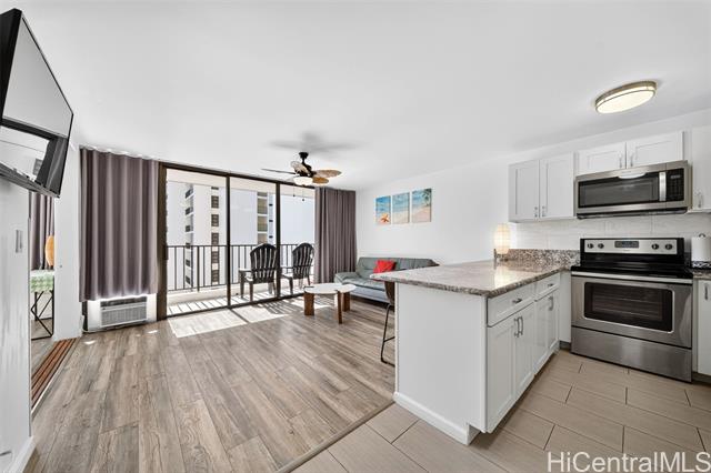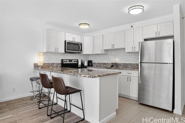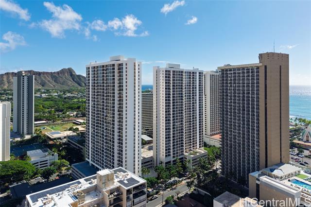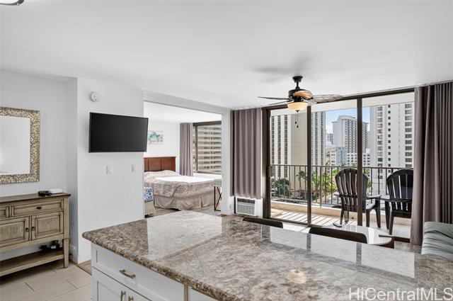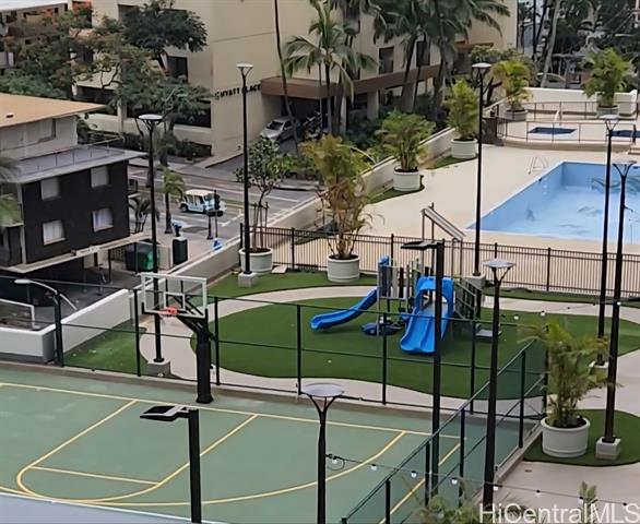 Legal short-Term Rental condominium in the heart of Waikiki! Completed gutted and renovated with new light fixtures and countertops. cabinets, and appliances. This condo is fully furnished. Brand new recreation deck with beautiful amenities such as a pool, whirlpool, playground, BBQ area, including a convenience store and coffee shop on site. This condo is just one block from the famous Waikiki Beach and within easy walking distance of restaurants, shopping, entertainment, the Honolulu Zoo, and Kapiolani Park. Live here year-round, part-time, or even for a few weeks out of the year, and rent out for income when you are not using it. Views from the lanai include Diamond Head, the Peak a boo ocean view, and the city. The maintenance fee includes all utilities, cable TV, internet, water, hot water, sewer, and one unassigned parking stall. Elevators were upgraded with modern interiors. This unit comes with a storage unit (236B) with an annual fee of $120. Whether you are looking for a full-time residence, a second home, or a vacation rental, this unit is a great value! The monthly sandwich lease of $52.20 ends on November 2035.