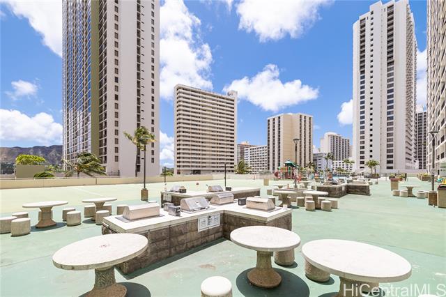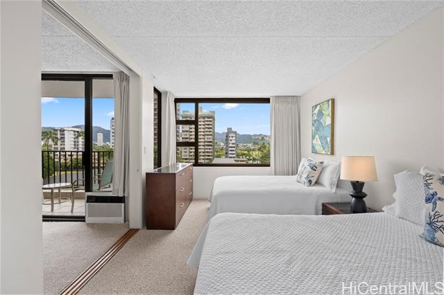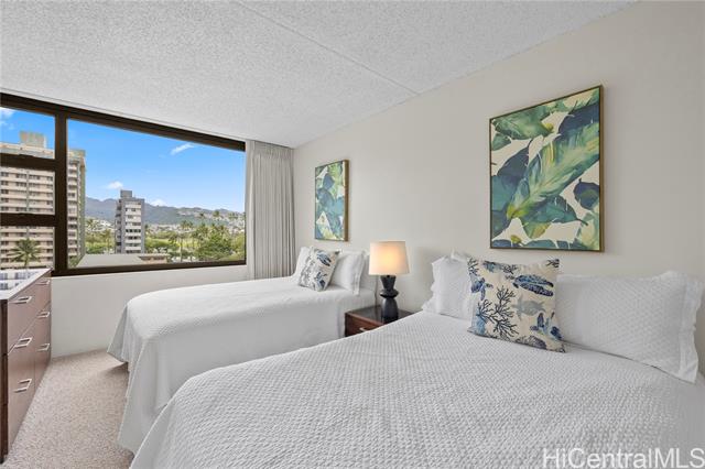 Located in the vibrant heart of Waikiki, this mountain view unit on the 6th floor of the Waikiki Banyan’s Mauka Tower(Tower 2) offers a comfortable, spacious, and practical island retreat. This is the preferred cooler mountain side of the building, allowing for the trade winds to keep you cool. This one-bedroom unit is just minutes from the beach and all the shopping and nightlife Waikiki has to offer. The 6th floor includes a variety of amenities such as a swimming pool, hot tubs, barbecue areas, a children’s playground, and tennis courts. Staying on this floor provides immediate, convenient access to these facilities without needing to use the elevator. This unit includes WASHER and DRYER, which is unique only to the 6th floor units.