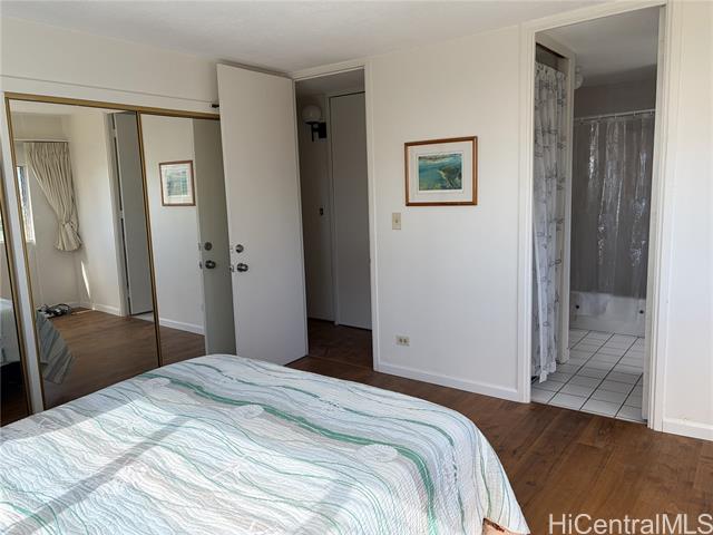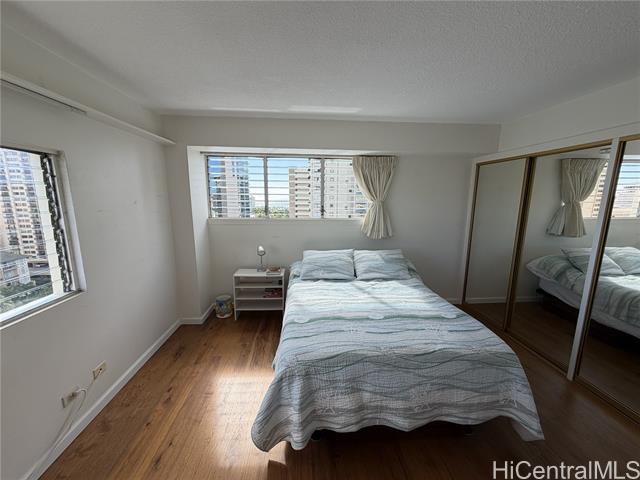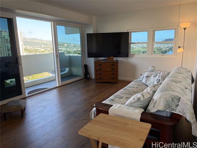 Sought after building in Waikiki with expansive mountain and Ala Wai views from Diamond Head to the east all the way to Punchbowl in the west. Building has wonderful privacy with only 2 units per floor and this entrance has an upgraded elevator area with new ceramic tiling. This spacious unit has hardwood parquet flooring in the entry way and hallway, and new wood laminate flooring throughout. Large sliding windows to the lanai have been replaced with high end double pane vinyl sliders. Bathroom and living room jealousy windows have been replaced with vinyl sliding windows with 3 more windows to be completed in the next 2 months. There is a storage unit on the same floor as the unit for easy access. The parking stall is in the lower level of the covered and gated garage. It's a large single stall with no cars on either side. Unit has just been painted. Some furnishings can be sold with the unit, bedroom dressers, large screen TV, a high-end electronic bed that was never used as owner was moved to a care facility before it was delivered.