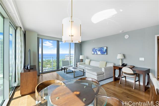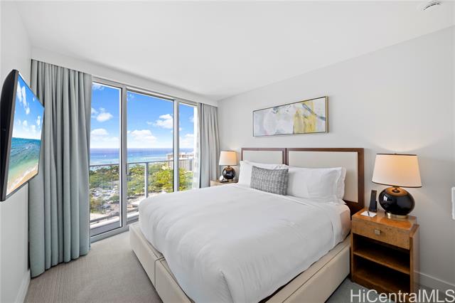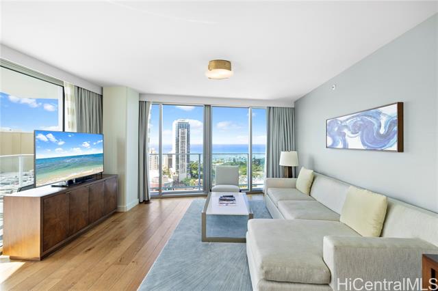 Experience luxury living at the Ritz-Carlton Residences Waikiki, one of the few 5-star resort destinations in Waikiki. This rare corner 2-bedroom, 2-bath unit in Tower 2 offers stunning panoramic views, from the Ko'olau Mountains to the Ocean. The interior features high-end finishes, a full kitchen, and a spacious living area that opens to a covered lanai with 180-degree views. Enjoy world-class amenities including infinity pools, a fitness center, spa, and on-site dining, Very close of Waikiki Beach, shops, and restaurants in the heart of Waikiki.