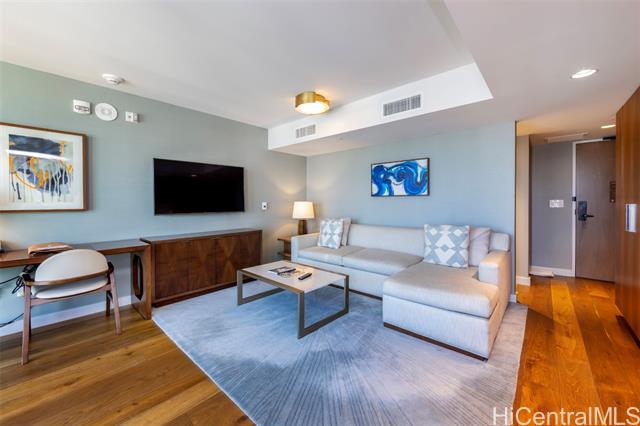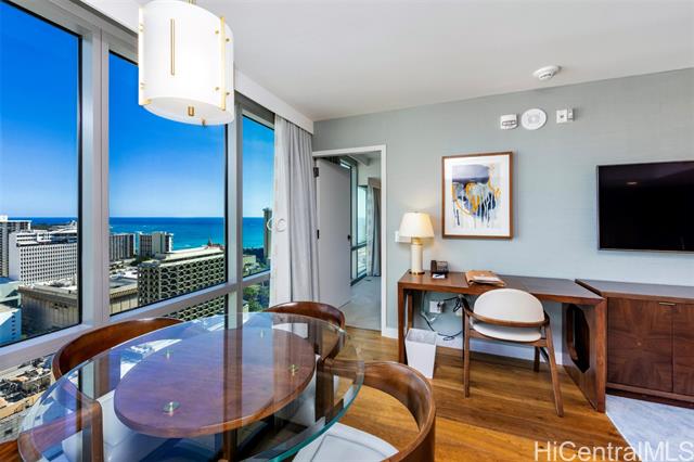 Island-Style Luxury meets 5-Star Resort Resort Living at the Ritz-Carlton Residences Waikiki. Located in the newer Diamond Head Tower 2 completed in 2018, this 1 bedroom, 2 full bath end-unit enjoys stunning 180-degree views of the Pacific Ocean, partial Diamond Head, Ala Wai Canal, and Ko'olau Mountains. Enter to find a contemporary floor plan combining living, kitchen, and dining spaces. A private lanai just off the main living area is the perfect place to enjoy morning sunrises with views of paradise. The bedroom suite also features direct Diamond Head and Ocean views, and features a true resort ensuite bathroom with separate deep soaking tub and walk-in shower. Centrally located in Waikiki, fine dining, high-end shopping, sandy beaches, stretching coastlines, and water activities are just minutes away. A Lifestyle of Luxury awaits at the Ritz. This property is an ADA-compliant unit.