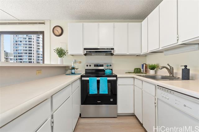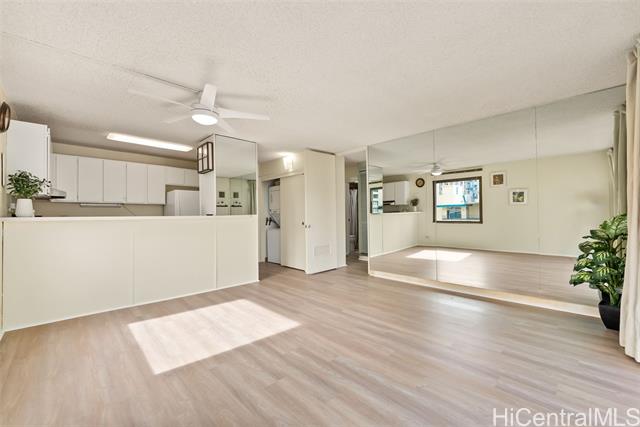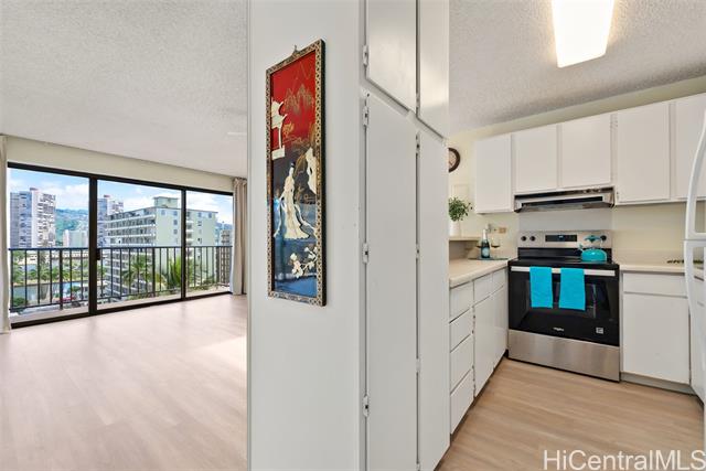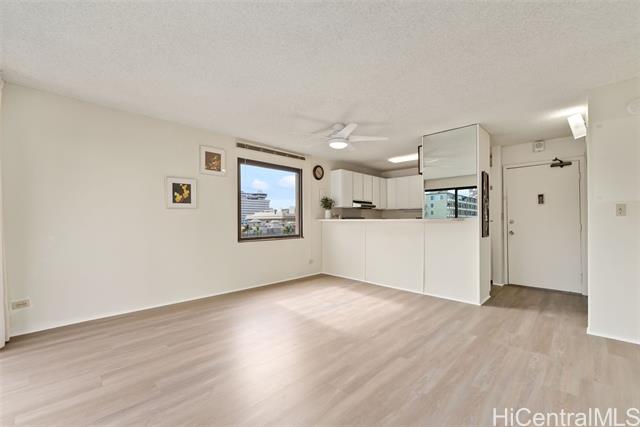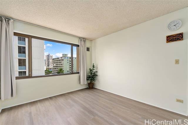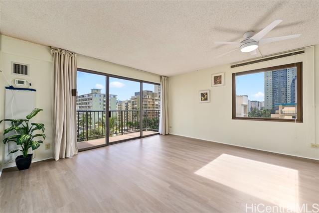 NEW LISTING! Rarely available corner-end 1 bedroom, 1 bath condo in the heart of Waikiki! At 577 sqft, this highly desired 01 stack unit is the largest 1-bedroom layout at Four Paddle, situated on the cooler and quieter side of the building. This bright and airy gem features refreshing tradewinds, an extra window, a more spacious kitchen, and unobstructed, peaceful mountain and Ala Wai Canal views. Brand new luxury vinyl plank flooring throughout, brand new ceiling fan, upgraded bathroom with walk-in shower, central AC, in-unit washer/dryer, separate storage locker, and 1 assigned covered parking stall. Unwind with a book or glass of wine from your own lanai. Resort-style amenities include a large heated pool, expansive sundeck, Jacuzzi, sauna, BBQ area, outdoor dining space, and 6 guest parking stalls. Four Paddle is a well-managed, secured, pet-friendly high-rise located directly across the street from The Ritz-Carlton Waikiki and just minutes to famed beaches, world-class shopping, fine dining, cafes, and bus lines. Maintenance fee includes electricity and utilities. Don’t miss this one! A few photos have been virtually staged(enhanced).