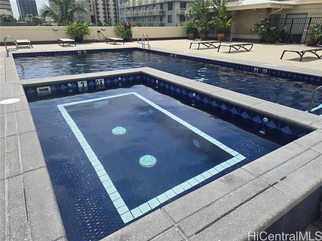 Great opportunity to own a well-maintained 1-bedroom unit in the heart of Waikiki! This move-in ready condo features durable vinyl flooring throughout, a new water heater (2022), and a brand-new window AC (2025). The layout offers a full kitchen designed to maximize every inch of space, featuring extra cabinetry for superior storage. Enjoy resort-style amenities including a swimming pool, jacuzzi, sauna, and 24-hour security, plus additional storage right outside the unit. Unbeatable location just a short distance from world-famous Waikiki Beach, luxury shopping, and premier dining. Ideal for first-time buyers or investors.