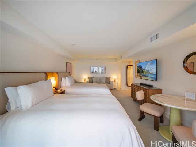 Experience luxury 5-star hotel living at Ka La'i Waikiki Beach (former Trump Tower Waikiki) Hilton’s new luxury LXR Hotels & Resorts. This unit has already the paid renovation cost of about $130,000 to be able to enter the new hotel pool program . This large 559 sqft studio also has a 77 sqft lanai overlooking the ocean and Fort Derussy Park, and comes fully furnished with hotel furniture & spa like accessories. Building amenities include maid service, room service, restaurants, infinity pool & jacuzzi, 24hr fitness center, luxury spa for massage & facials, business center, surfboard & bike storage, and free valet parking for owners. Maintenance fee includes access to all amenities and all utilities except electricity. Located across the street from the world famous Waikiki Beach and next to many shopping & dining options. Come take a look today and enjoy this Waikiki resort vacation and executive lifestyle!