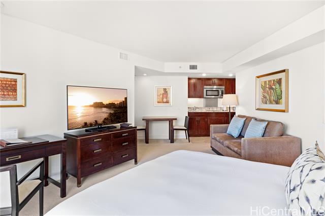 Enjoy luxury living at Ka La'i Waikiki Beach, LXR Hotels & Resorts Hotel/Condo! (former Trump International Hotel Waikiki) This studio unit comes fully furnished with all linens & Kitchenware. Top notch amenities include infinity pool, concierge, valet parking and a full service spa. Including in purchase are upscale appliances, granite counter tops and travertine tile flooring.