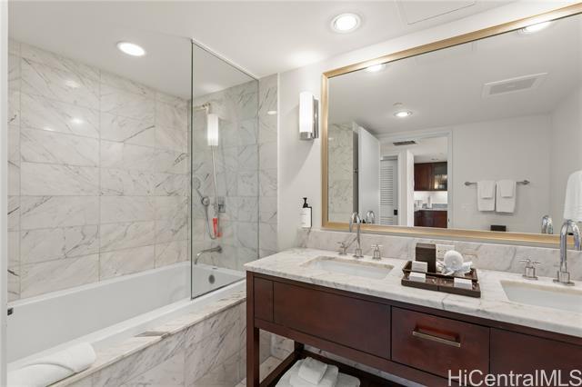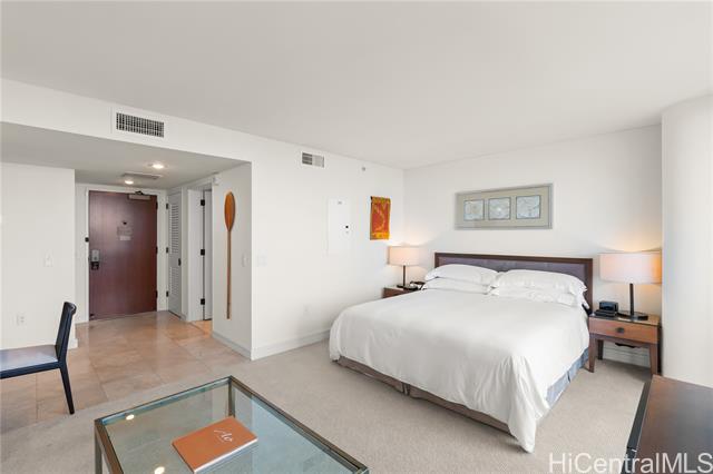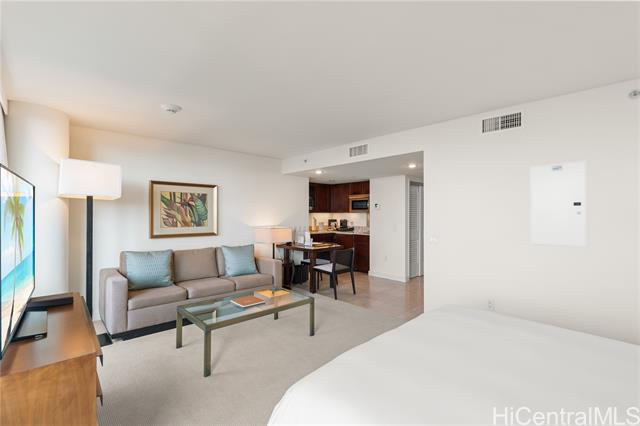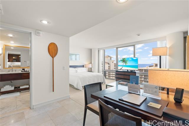 You would love this luxury resort hotel lifestyle at Ka La‘i Waikiki (Trump Tower Waikiki). You have a direct ocean view from the fully furnished unit including a king size bed and regular size sofa (queen size sofa bed) even a comfortable dining table. Please enjoy first-class hotel amenities such as concierge, valet service, fitness center, full-service spa, bar and lounge, pool, and hot tub. Basic internet and cable TV, water, sewer, and common area expenses are included in maintenance fees. Note, the special assessment for common area renovations will be paid off in 12/2025.