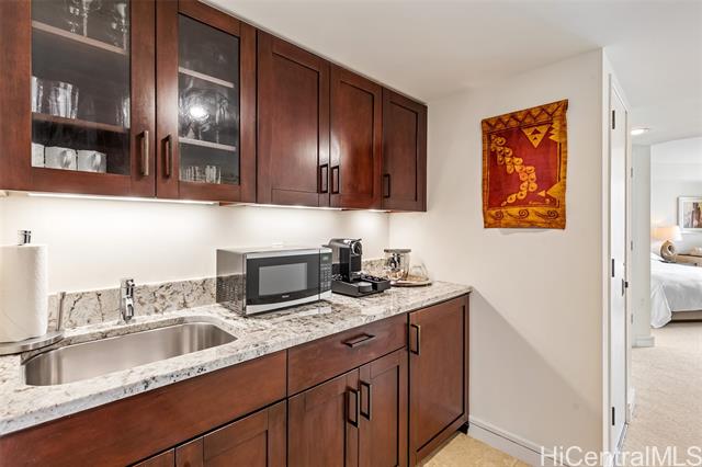 Updated Photos Coming Soon! Well appointed turn-key studio with ocean, Diamond Head, & Waikiki views at Ka Lai Waikiki Beach (formerly Trump International). This luxury studio is well appointed with marble floors, granite countertops, separate soaking tub & shower, Toto toilet, & designer fixtures. The residence is fully furnished and turn-key ready for immediate enjoyment. As part of the prestigious Ka Lai Waikiki Beach Resort, world-class amenities include a sparkling infinity pool, fitness center, full-service spa, bar, restaurant, business center, surfboard storage, free valet, and concierge services. Centrally located in Waikiki, just steps from sandy beaches, fine dining, nightlife, and luxury shopping. Perfect pied a terre vacation home or investment opportunity. Onsite rental program available from Hilton Hotel’s new brand of LXR Resorts & Hotels. BEST value unit in the building! Special assessment of $708/month ends December 2025 according to Ka Lai management office. SELLER HAS PAID THE FULL $108,500 FEE FOR THE UNIT INTERIOR RENOVATION COST so the unit IS ELIGIBLE for the Rental Program.
