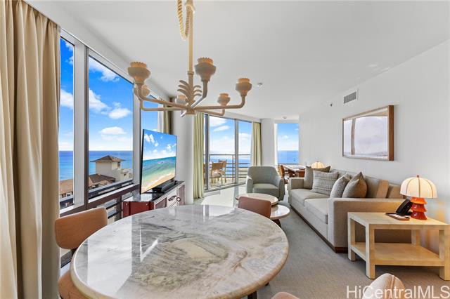 Enjoy luxury living at Ka La'i Waikiki Beach, LXR Hotels & Resorts Hotel/Condo! (former Trump International Hotel Waikiki) This 1 bedroom comes fully furnished and has desirable ocean views and just finished interior renovation, This unit IS ELIGIBLE to join hotel rental! Top notch amenities include infinity pool, concierge, valet parking, and a full service spa. Included in purchase are upscale appliances, granite counter tops, and travertine tile flooring.