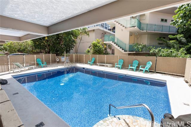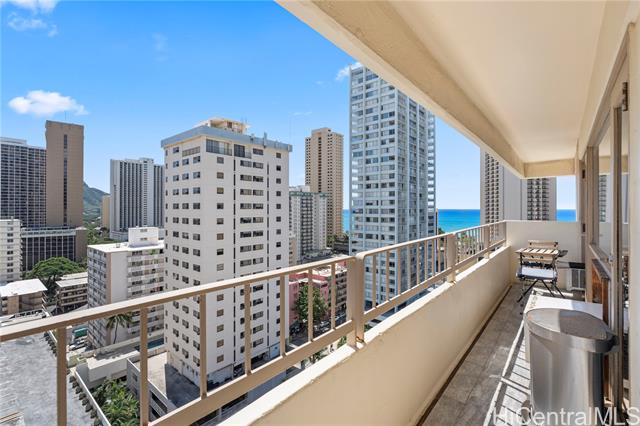 The beach is calling from this stunning, turnkey 2-bedroom penthouse retreat in the heart of Waikiki! Meticulously renovated, this 830 sq. ft. home at the Governor Cleghorn offers breathtaking views of the turquoise Pacific Ocean, Koolau mountains, and a peek-a-boo view of iconic Diamond Head. The interior features a gourmet kitchen with custom cabinetry, stainless steel appliances, and a wine refrigerator. Unwind in your expansive primary suite, complete with a walk-in closet and a spa-inspired bath. Enjoy seamless indoor-outdoor living on your spacious private lanai with custom benches, perfect for sunset cocktails and cool trade winds. Modern conveniences include an in-unit washer/dryer, A/C, a storage room in the lanai, and a highly desirable ground-level parking stall located just steps from the secure keyed elevator. The building features a resident manager and a refreshing swimming pool for entertaining friends and family. Perfectly positioned two blocks from world-famous Waikiki beaches and steps from the International Market Place, this is your opportunity to live where every day feels like a vacation!