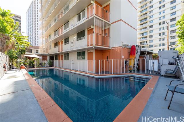 Discover island living at the Hawaiian Crown !! Centrally located in the heart of Waikiki this home is minutes away from world class beaches, surfing, shopping, and endless activities throughout Waikiki. The Hawaiian Crown features secure entry, an on-site resident manager, surfboard racks, a storage locker, a refreshing pool with a lanai to relax and enjoy. This building also features a convenience store on the street-side of Liliuokalani Ave. HOA fees at the Hawaiian Crown also includes premium cable & internet services. This home is located on the First Floor of the building conveniently ruling out foot traffic and any use of elevators. This 1-bedroom and 1-bath residence optimizes 409 square feet of living space, making it ideal as a primary residence, vacation home, or an investment property. Enjoy the best of Waikiki living with comfort and security here at the Hawaiian Crown. First Open Sunday 1/18 1:00-4:00pm
