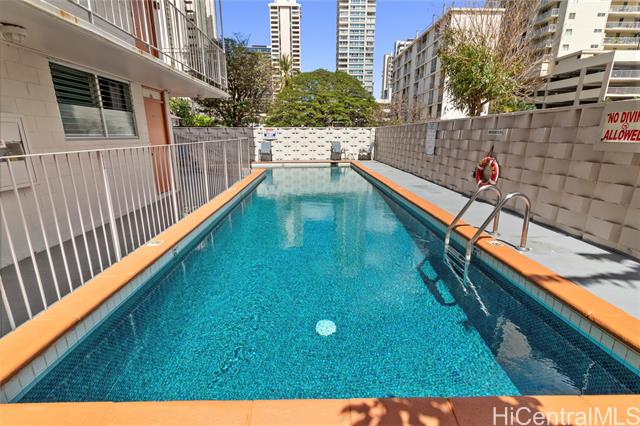 Welcome home to Hawaiian Crown, a Fee Simple value in the heart of Waikiki! Turnkey ready updated 1 bedroom 1 bath condo with its own covered lanai with pleasant ocean breezes. Pet friendly (30 lbs or less), secured entry, elevator, swimming pool, surfboard storage, laundry room and on-site convenience store. Rentals of 30 days or more allowed (Airbnb/VRBO). Some residents have rented parking in nearby buildings. Conveniently located near sandy beaches, restaurants, shopping and Waikiki zoo. Request your private tour of this great buy today!