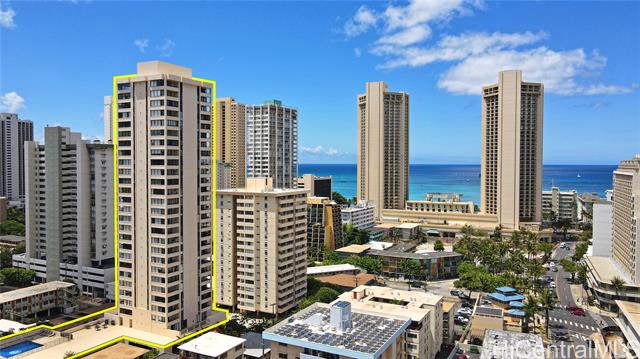 1 bedroom 1 bath 1 covered secured parking stall with only 4 units per floor. Located on a high floor with beautiful views of Diamond Head, Ala Wai Golf Course, and the surrounding mountains. Washer Dryer and AC has recently been replaced. Building amenities include a pool, sauna, and BBQ area. Relax on your lanai and enjoy the iconic Diamond Head views. Conveniently located in Waikiki near shopping, dining and just a short distance to the Honolulu Zoo. Great opportunity to make this unit your own and enjoy the Waikiki lifestyle. Interior photos coming soon don't miss this opportunity.