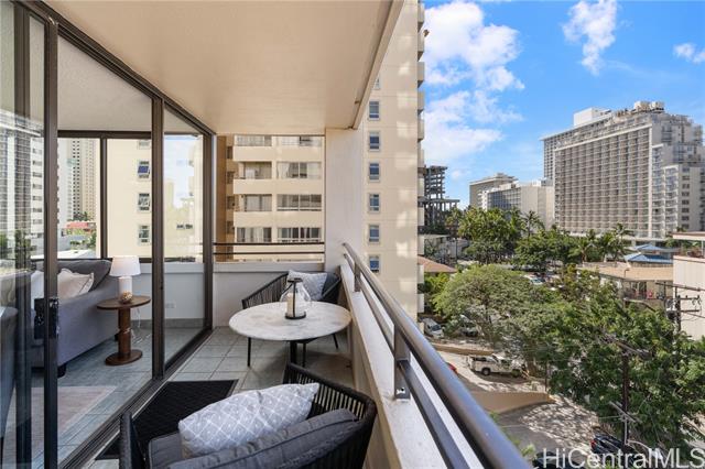 Best central Waikiki location! A beautifully maintained one bedroom unit. Features plenty of storage in kitchen, bathroom, and the bedroom cabinets can double as an office or extra storage with Corian countertops. Bright, cheerful, unit with afternoon sun. Stay cool with solar guard window tinting and air conditioners in both the living room and the bedroom. Washer/Dryer in unit. Large heated pool with a large pool deck complete with bbqs, mens and womens separate saunas and showers. This spacious condo is a short distance to Waikiki's renowned shopping, dining, surfing, sandy beaches, a new Target, and a 32,000 square foot Food Pantry only one block away! Enjoy the spacious open air outdoor lanai! Waikiki SkyTower is a quality high rise building with only four units per floor. Extra wide, covered, secured garage parking. Lowest priced unit in the building for sale - nothing in Waikiki compares to this value! PRICED FOR A QUICK SALE. (Pet friendly & furniture included minus staging items)