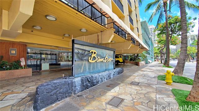 Discover this turnkey 264 sq ft studio in boutique Bamboo Waikiki, legally permitted for short-term rentals and in resort zoning. This furnished unit is on serene side away from Kuhio Avenue, providing tranquil retreat steps from Waikiki. Features include kitchenette with two-burner cooktop, full-size refrigerator, microwave, coffee maker, plus bathroom with tub/shower. Recent upgrades include new split air conditioning, sound-dampening glass doors, renovated elevators. Property showcases lagoon-style pool with cascading waterfall surrounded by tropical foliage. Additional amenities include jacuzzi, BBQ, lounge chairs, thatched cabana seating, Ko Tiki Terrace poolside restaurant. Castle Resorts operates front desk, or opt for independent self-management. Prime central Waikiki location places you less than 1.5 blocks from Waikiki Beach, moments from International Market Place, Royal Hawaiian Center, luxury boutiques, acclaimed dining, entertainment. Monthly maintenance fee covers all utilities: electricity, water, sewer, cable TV, high-speed WiFi. Excellent investment in boutique property known for strong occupancy rates and zen-inspired atmosphere.
