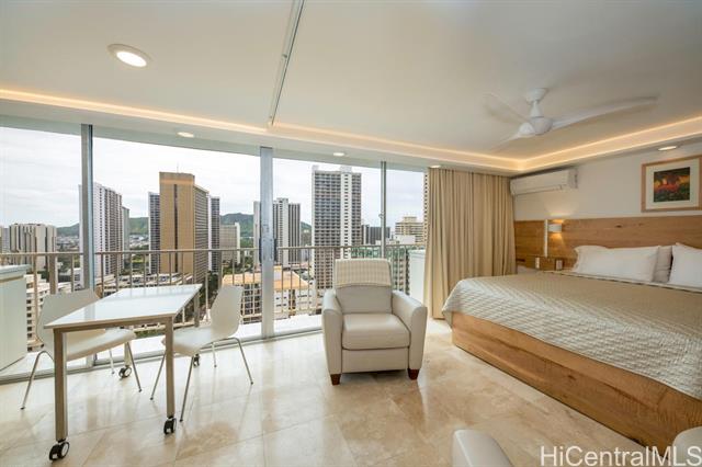 Exceptionally remodeled studio unit just a few minutes walk to the famous Waikiki Beach. This unit is an active vacation rental unit renting on Airbnb with high reviews. Suited for investors that want income from Day 1. Seller self manages and open to managing the unit for the new owner. Magnificent ocean views from the unit. All furnishings are included in the sale. Pacific Monarch is arguably one of the best vacation rental building in Hawaii. Building amenities have been recently renovated as well. Building offers the Highest Rooftop Pool, jacuzzi, sauna, and recreation area with BBQ grills. The building also has one of the larger parking garages in Waikiki and guests and owners are able to use the garage with a reasonable fee. Located in the center of Waikiki. Few minutes walking distance to all the action Waikiki has to offer plus being just a few minutes from the beautiful Waikiki Beach. This is a special unit! Unit is leasehold and fee is available to purchase from AOAO for $210,000 (Buyer to confirm). LH price and fee purchase total is $648,000.
