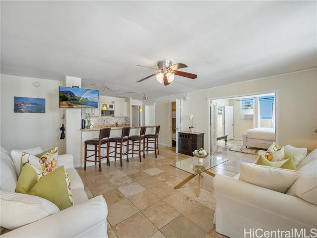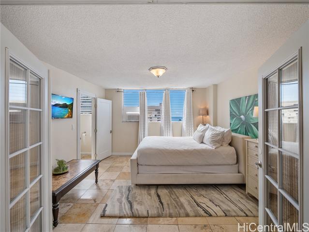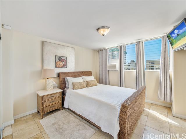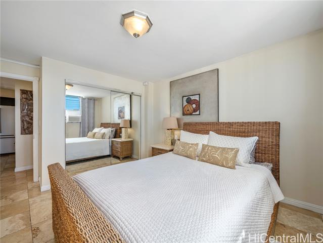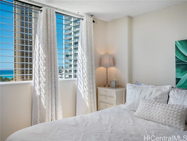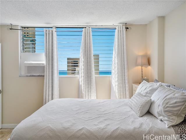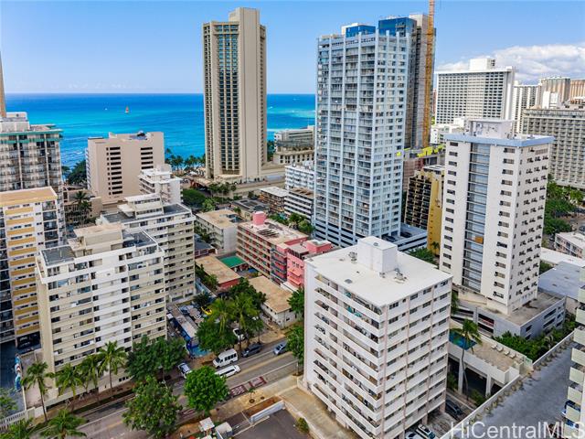 Enjoy this spacious, beautifully upgraded 2-bedroom, 2-bath condo, just one block away from world-famous Waikiki Beach. This charming property is surrounded by great restaurants, shopping, parks, and attractions like the Honolulu zoo and aquarium. Located in the secure, pet-friendly building with only four units per floor, this corner-end unit offers privacy, ocean views and breezes with good indoor/outdoor living from the generous size lanai. Enjoy over 973 sq ft of open-concept living, chefs kitchen, AC, and deeded covered parking stall. Conveniently located by amazing surfing, snorkeling, and paddling spots, as well as public transit, Biki bike stations, and all that Waikiki has to offer! Ideal as a full-time home, vacation retreat, or investment property. Don't miss this opportunity!