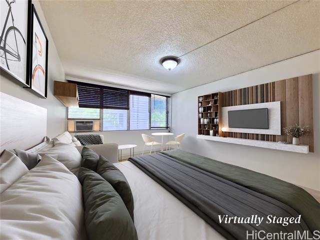 TURN KEY, MOVE-IN CONDITION, FEE SIMPLE. Welcome to Ainahau Gardens! Featuring a charming Studio, 1 Bath condo with a full kitchen. Ideal investment property, a part time vacation getaway, or full time residence. The spacious floor plan provides room for both a sleeping area and a comfortable living space, with plenty of cabinet and storage space. Window AC to keep you cool. Conveniently located in the middle of Waikiki. Walking distance to everything that Waikiki has to offer (beach, surfing, bus line, shopping, eateries, night life, golf, International Marketplace, Kapiolani Park & more). Secured building, resident manager, keyed elevator, community laundry, moped/motorcycle parking area, surfboard storage, bicycle rack. Sold AS-IS. ***CLICK ON THE VIRTUAL TOUR LINK TO DO A VIRTUAL WALKTHROUGH***