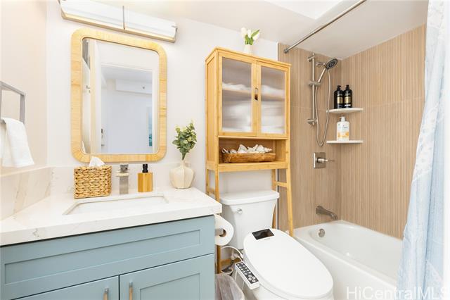 FEE SIMPLE LEGAL VACATION RENTAL with a brand new renovation, fully furnished, and high income short term rental bookings! Experience the center of Waikiki from this stunning Kuhio Village studio with 2 full size beds, new waterproof laminate flooring, quartz countertops, custom cabinetry, full size fridge, wall mounted TV, bathtub with shower, and a large outdoor private lanai. Kuhio Village offers an open air lobby, guest check in options with no extra fees, surfboard & luggage storage, outdoor patio with BBQ grill, basement parking at $2/30 min or $30 overnight, 24hr security, convenience store, and bike rental! Low property tax rate and low monthly maintenance fee includes all utilities so there's no other bills. Located just a block from world-famous Waikiki Beach, this turnkey property offers unbeatable convenience for vacationers or investors alike. Enjoy easy access to beaches, surf breaks, shops, restaurants, and nightlife right outside your door. Perfect as a vacation getaway, second home, or short term rental income-producing investment. Don’t miss this rare opportunity to own a piece of paradise in one of Hawaii's most sought-after destinations in the heart of Waikiki!