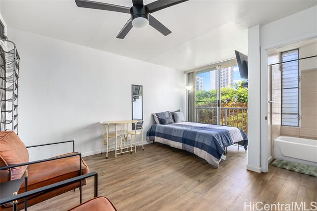 NEW LISTING! Updated and turnkey studio is one of the best values in Waikiki! This charming unit is a few blocks from world famous beaches and close to everything. Upgrades include newer laminate flooring, shower tiles, ceiling fan and wall mounted TV. Renovated kitchenette includes newer cabinets, backsplash, countertop, cooktop, refrigerator. Close to world-class dining and shopping, entertainment, cafes, Kapiolani Park, Waikiki Zoo and bus line. The private lanai adds extra space to relax and enjoy the breeze and open view. Pacific Islander is a secured, pet-friendly, boutique building. A great opportunity for first-time Buyers or investors to own a piece of paradise. One of the BEST PRICED fee simple options in Waikiki! Do not miss this one!