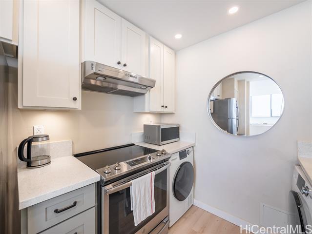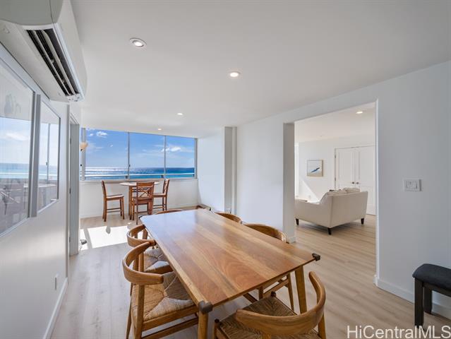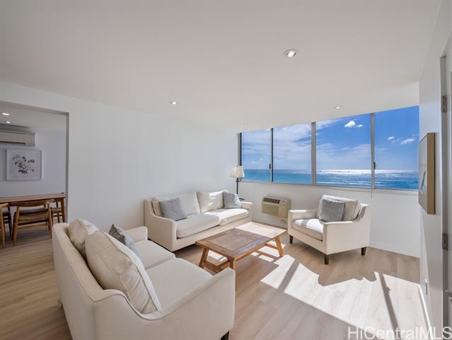 Welcome to one of the most desirable units in Foster Tower- a prime end unit with unobstructed ocean, beach, and sunset views. This beautifully renovated 2-bedroom, 2-bath condo features a modern kitchen with stainless steel appliances, updated bathrooms, new flooring, and both spilt and window AC units for added comfort. Washer and dryer are in-unit, and the property includes a FEE SIMPLE interest with an assigned parking stall. Located directly across from Waikiki Beach, Foster Tower offers secure entry and resort-style amenities including a newly renovated gym, sauna, and pool. With Resort zoning and a 30-day minimum rental allowed (per house rules), this unit is perfect for a full-time residence, vacation home, or investment opportunity. First Open House Sunday, November 2nd, 2-5 pm. *some photos have been virtually decluttered