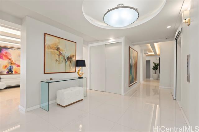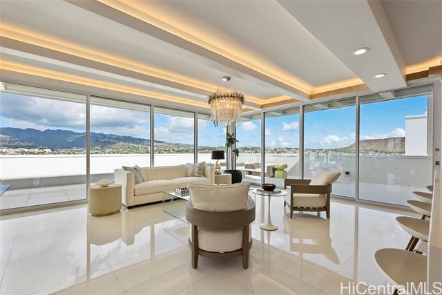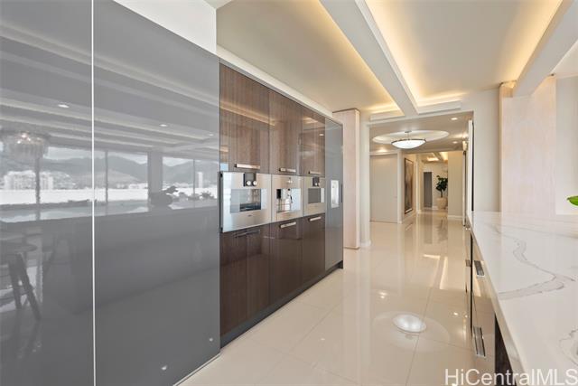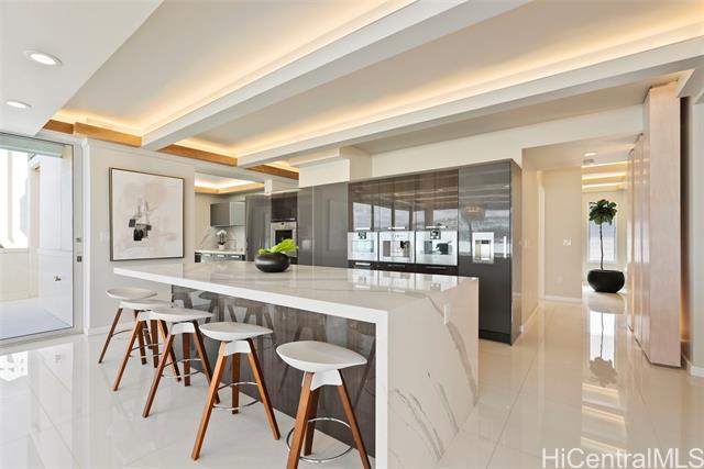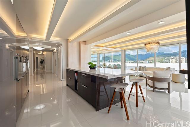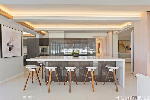 Discover this exceptional single level Waikiki penthouse retreat where luxury, elegance, and Hawaiian beauty seamlessly meet. Encompassing approx. 7,500 sq. ft. took over 2 years to complete presenting unmatched comfort, design and functionality handcrafted Alf Monticarlo kitchen features an expansive 11.5 x 5.5 ft. Cambria island and Gaggenau appliances, induction cooktop with discreet 650 CFM vents, speed, steam, and rotisserie ovens, a coffee maker, freezer, dual-temperature wine cellar. Floor-to-ceiling Fleetwood windows, defogger mirrors, porcelain facets, maple columns -underwent extensive plumbing retrofit, new roof, electrical and plumbing layouts, rescheduled windows, major structural enhancements, all overseen by 5 engineers with detailed plans and permits. A cantilevered balcony not only offers 360-degree views but also contributes to noise isolation, enhancing the serene atmosphere. Recent upgrades include $240,000 in concrete work on the lanai, concrete interior with polished porcelain tiles for added durability and beauty. Additional building improvements feature complete spalding, paint, new roof with 360-degree copper flashing, ensuring lasting quality and beauty.