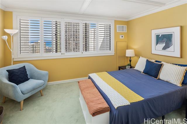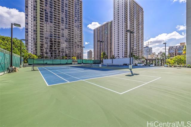Wake up to breathtaking Diamond Head views in this well-appointed 1-bed, 1-bath in the King Tower. This bright unit features a modern kitchen, wood-style flooring, and plantation shutters. The building offers a vacation-like atmosphere with a refreshing pool, peaceful Koi pond, and several dedicated BBQ stations. Fitness enthusiasts will love the on-site tennis and pickleball courts, while the various community seating zones provide the perfect place to unwind. Management is a breeze with an attentive resident manager available on the premises. Complete with a clean community laundry facility and professional on-site oversight, this property offers incredible value and resort-grade perks.