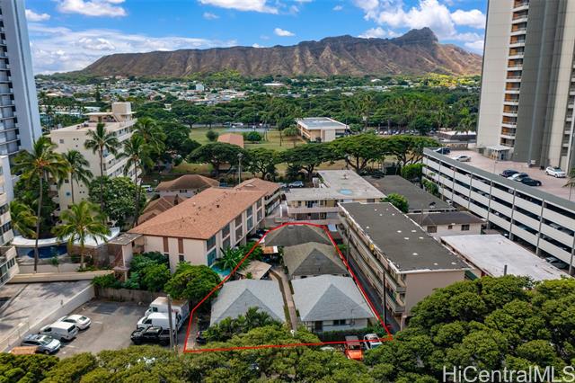 Once in a lifetime opportunity to own one of the largest single parcel, fee simple, apartment zoned properties in Waikiki--one of Hawaii's most important real estate markets. Only 12 fee simple Waikiki properties over 7,000 sq. ft. have been registered as sold on the MLS in the past 3 decades. Conveniently located on a quiet residential street on the Diamond Head side of Waikiki, this spacious & level lot boasts 4 single family homes. Each 3BD/1BA home is approx. 747 sq. ft. & is separately metered for electricity & water. Each home has its own full size washer/dryer & parking stall (5 stalls total for 6 cars, 1 stall is tandem). These tastefully upgraded vintage Waikiki Plantation homes with entryway patios & soaring 9 foot ceilings were built in 1939 & collectively evokes the charms of yesteryear Waikiki. Featured on Magnum PI! EXCELLENT income property, but development & renovation opportunities abound for its next chapter. Its superior location puts you within moments to world famous Waikiki Beach & various dining, entertainment, & employment options throughout Waikiki, Kakaako, & metro Honolulu. Buyers to complete all due diligence that they may deem material. Sold AS-IS.