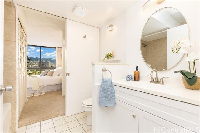 Enjoy the convenience of TWO parking stalls in Waikiki along with sweeping unobstructed views of the Ala Wai Golf Course, canal, and mountains from both the living room and primary bedroom. The updated kitchen features quartz countertops, white shaker cabinets, updated lighting and an in-unit washer and dryer. Monte Vista is a secured building with fob access, a gated garage, and amenities including a pool and BBQ area. All of Waikiki's best beaches, dining, shopping and more are just minutes away!