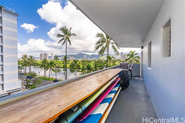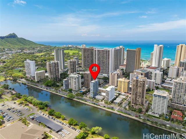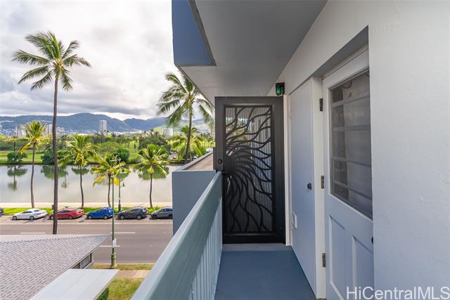 Experience unparalleled views of the Ala Wai Canal, Golf Course, and Mountains! Situated on the desirable Diamond Head side of Waikiki, this two-bedroom, two-bath residence offers exceptional versatility, making it perfect for an owner-occupant, an investor, or both. This boutique building ensures privacy with only two units per floor and no common walls. A distinctive floor plan provides two separate entrances, allowing the residence to be utilized as a spacious two-bedroom unit or cleverly configured as a one-bedroom unit and a separate studio apartment. The condo features a remodeled kitchen and bathrooms, in-unit stacked washer/dryer, and newer luxury vinyl plank flooring throughout. Additional amenities include a private entrance with a covered lanai and convenient built-in surfboard storage. Conveniently located just minutes away from the beach, the Waikiki Shell, Kapiolani Park, and world-class dining and shopping along Kalakaua Avenue.