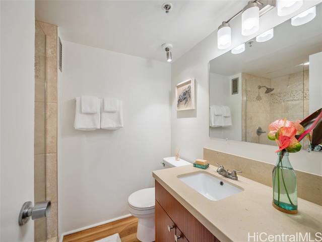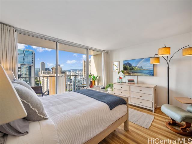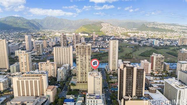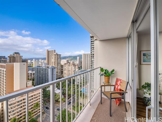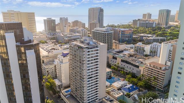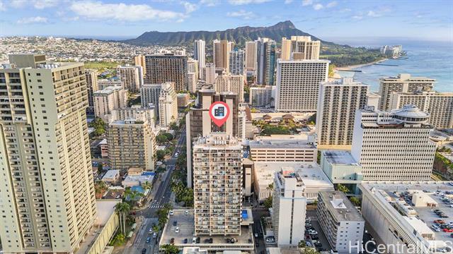 High-Floor Studio with Ocean & City Views \ Legal Short-Term Rental in Waikiki High-floor, fee simple studio at Marine Surf Waikiki offering a rare opportunity for legal short-term rental ownership in the heart of Waikiki. This chic unit features ocean & city views, a custom cherry wood kitchen, luxury vinyl flooring, and a covered lanai with cooling trade winds. The unit has been actively operated as a short-term rental, possible to convey existing reservations. Maintenance fees include electricity, water, sewer, and hot water, creating a streamlined ownership experience. Building amenities include a swimming pool, covered and deeded parking, storage lockers, and secure surfboard storage conveniently located on the same level as parking. Prime location one block from the beach, surf spots, the International Market Place, with dining, shopping, Starbucks, and Target nearby. Just minutes to Waikiki Beach, world-class resorts, and entertainment. Ideal as a lock-and-leave surf residence or flexible investment property you can rent it while away. Please visit us at our Open House Mon 1/26 from 12 to 4 pm, Tue 1/27 from 12 to 4 pm, Wed 1/28 from 10 am to 12pm.
