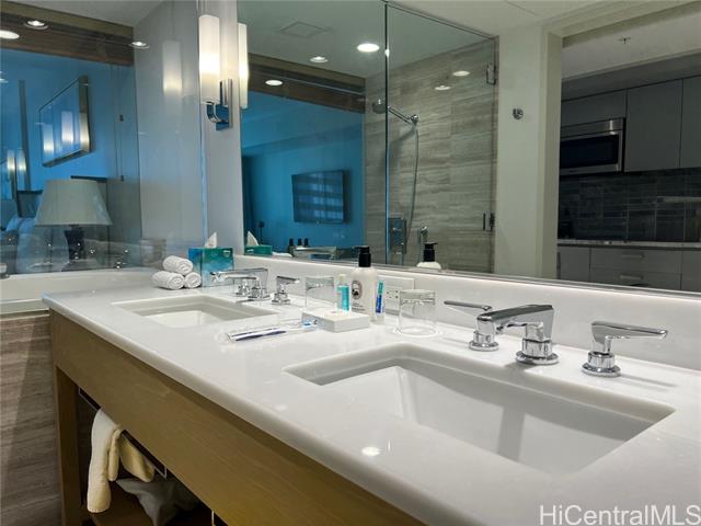 Enjoy luxury living at The Ritz-Carlton Residences Waikiki Beach Tower 1 Hotel Condo. This unit has been renovated and comes fully furnished with linens, kitchenware, upscale appliances, marble bathroom walls and countertops and washer dryer. Resort-style amenities feature two sparkling pools, a modern fitness center, concierge, and valet services, plus a popular deli/cafe. Easy access to hundreds of restaurants and events in Waikiki. Unit is currently not in hotel pool.