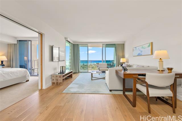 Experience this stunning & luxurious 1 bedroom residential unit at The Ritz-Carlton Residences, Waikiki Beach that comes fully furnished with linens, kitchenware, a gourmet kitchen with Miele appliances, hardwood flooring, marble bathroom walls & countertops and in-room laundry. Pet-friendly building features five-star amenities that include twin infinity pools with private cabanas, concierge, valet parking, yoga studio, fitness center and a full service spa. This spacious layout has a dining area, separate living room and wrap-around lanai with floor-to-ceiling windows that bring in beautiful shoreline views. Enjoy on-site dining at Dean & Deluca, Quiora, Sushi Sho or La Vie or travel a short distance to world-class shopping, dining & Waikiki beaches!