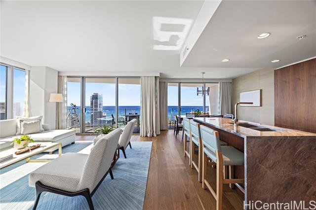 Now available, a rare corner end residence in the Ewa Tower at The Ritz-Carlton Residences, Waikiki Beach. This three-bedroom, three-bathroom unit offers a functional layout with defined privacy and thoughtful separation. Two bedrooms include en-suite bathrooms, supporting streamlined living or guest accommodations. The main living area extends to an outdoor lanai, providing additional usable space and a natural extension of the interior. As part of the Ritz-Carlton’s residential collection, owners benefit from dedicated services, secure access, and resort-level amenities in a central Waikiki location. This residence presents a straightforward opportunity for those seeking a dependable, full-service property in one of Honolulu’s premier luxury towers.