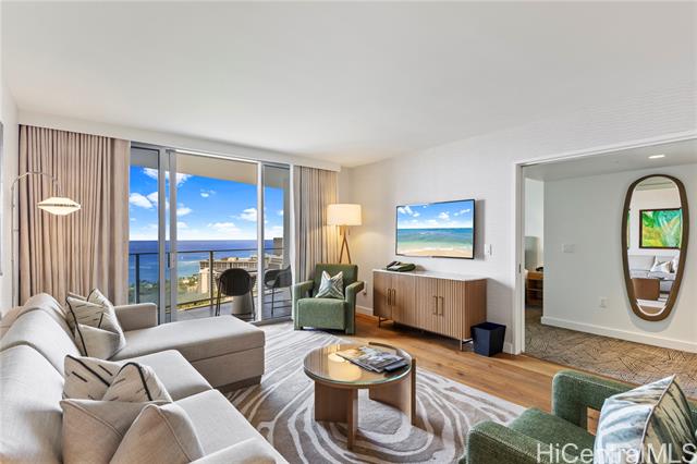 Renovation completed on March 2025!! Luxury living at Ritz-Carlton Residence Waikiki! High floor condo located in Tower 1. Fully furnished with granitecounter tops, upscale appliances and washer & dryer. Amazing ocean view over-looking Fort DeRussy Park. Watchthe sunset and Friday night fireworks.Enjoy the ultimate resort life with Ritz-Carlton signature services.