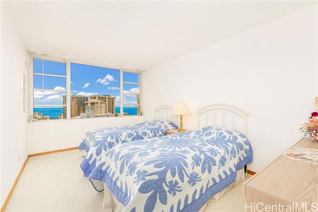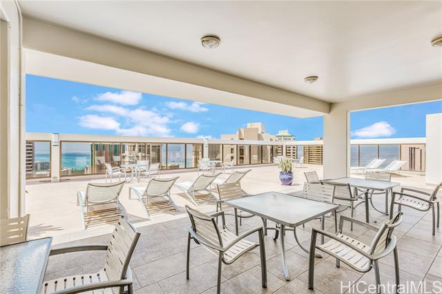 Villa on Eaton Square, a popular condominium facing Hobron Lane in Waikiki. View of Diamond Head and Beautiful Waikiki Ocean. You can walk to Ala Moana Shopping Center and the beach, and you can enjoy your life without a car. The bedroom is large enough to accommodate two beds, allowing you to spend a relaxing and comfortable time in the spacious living room. The rooftop has a pool with views from Waikiki to Ala Moana, a gym, a yoga room, and a common BBQ area. The commercial space on the first floor of the building includes a Supermarket, Rice ball Shop, Mexican cuisine, and Japanese cake shop "Kulu Kulu", the second floor there are Beauty Salon, Post Office, etc., making it very convenient. There is Fee simple with sandwich lease. The building is currently making adjustments to the central air-conditioning system, so the AC in the unit is temporarily out of operation.