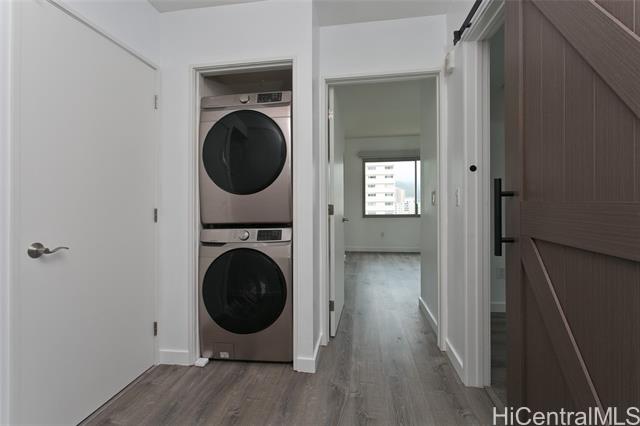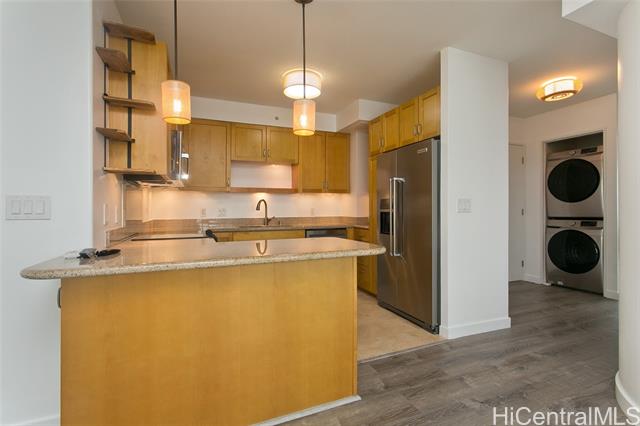 Immaculate residence at one of Waikiki's most preferred luxury condos. Diamond Head side corner unit of only 4-units per floor. Newer Refrigerator, Dishwasher, Faucet Fixtures, Lighting Fixtures, Ceiling Fans and Remote-controlled Window Coverings, laminate flooring, washer and dryer in 2022. Freshly painted and professionally cleaned. Beautifully landscaped with tropical plants, pool, BBQ area in gated, secured private residence. Walking distance to all of Waikiki yet away from the traffic congestion.