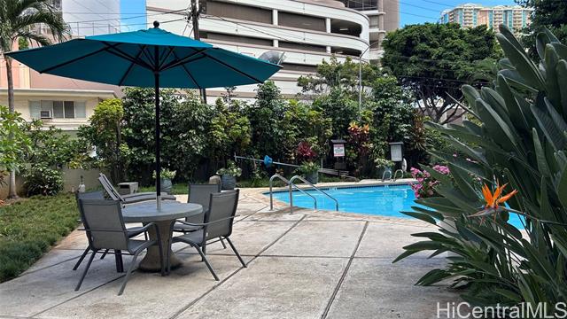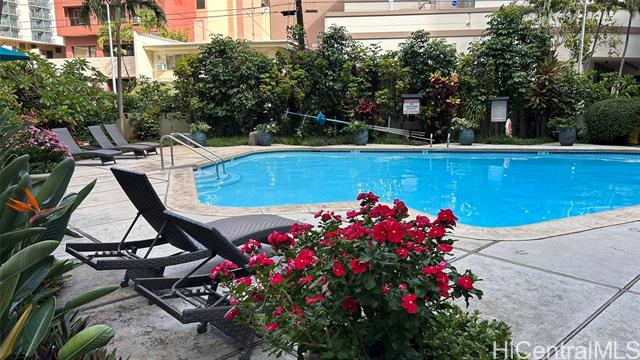 Coconut tree top level 1 bedroom, 1 bath in The Kalia, Leasehold co-op apartment on the edge of Waikiki. Front door has louvered windows, which keep this apartment cool and comfortable. Close to Hilton Hawaiian Village, beaches, restaurants, Food Pantry, Island Country Market, shopping, dining and short walk to Ala Moana Shopping center! The Kalia Inc grounds have manicured garden, pool, BBQ area, rooftop community laundry facilities in each building, open air lobby and security patrol. Apartment lease until 2048. Monthly Operating costs / HOA fees for 2025 are $1,474.40 per month, which includes (maintenance Fee $689.70, Hawaiian Telcom Cable TV & internet $54.61, Lease Rent $634.09 and monthly Property Tax $97.00)