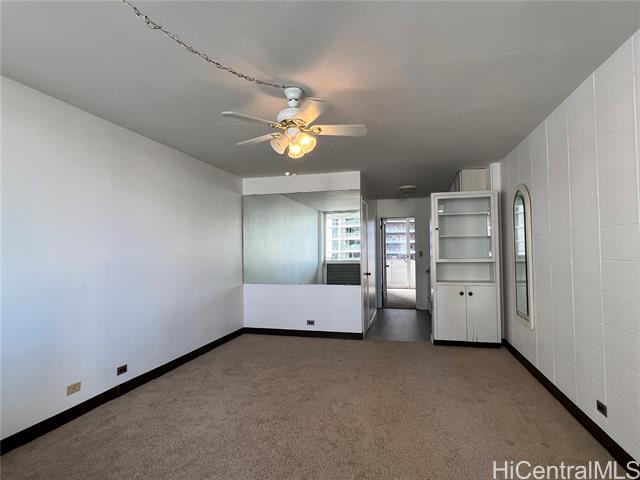 Welcome to your own peaceful retreat in heart of Waikiki. This home, located in the desirable "A" building, is an end unit on a high floor enjoying tropical breezes and added privacy. The unit is clean and bright and recently added new carpet and vinyl all around the floor. Also the unit has a new kitchen sink, cabinet and the vanity in the bathroom. The lanai offers openness to warm sunny days and has a nice brick colored tile. The Kalia offers Hawaiian charm with tropical private grounds as well as security patrol. Amenities to enjoy include the heated pool and BBQ areas on the spacious grounds. In addition, there is a sundeck and library on the top floor near the community laundry. This ideal location in within a block or two of groceries, restaurants, the bus and Waikiki Beach. Ala Moana shopping is also close by. This Leasehold- Coop property has a long lease until the year 2048. Monthly operating fees for 2025 = $1,474.40 (Maintenance $689.70, Cable TV $53.61, Lease rent $634.09, Property tax $97.00).