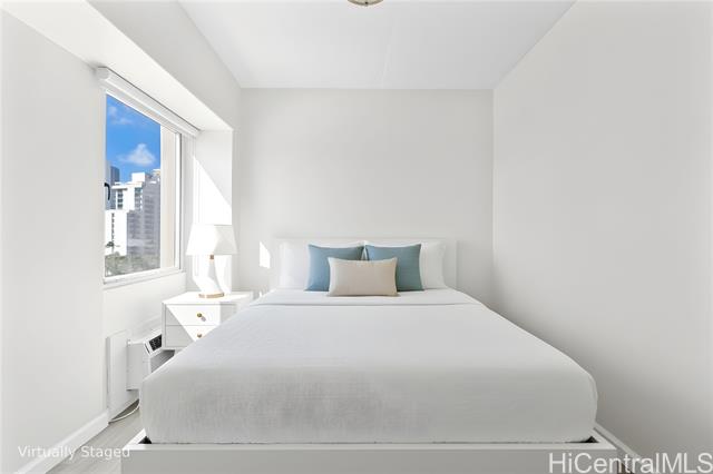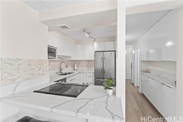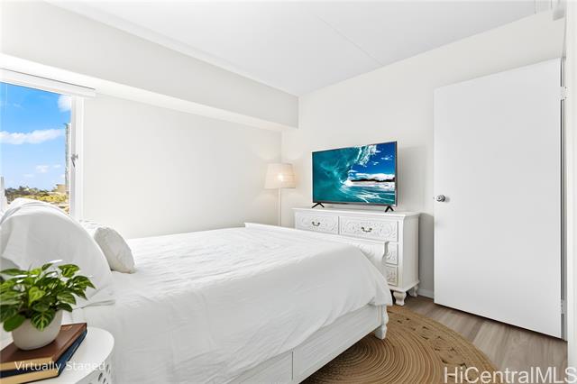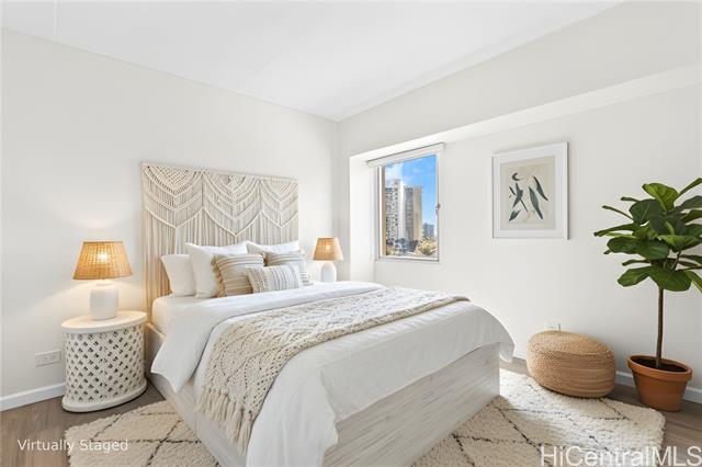 Welcome to island living in the heart of Waikiki at the Keoni Ana. This beautifully remodeled, move-in-ready condo offers sunset views over Fort DeRussy Park with the ocean just moments away. Step into a bright, modern interior featuring a brand-new kitchen with high-gloss soft-close cabinetry, quartz countertops, and new stainless steel appliances. The bathrooms have been tastefully refreshed with new tile walls, updated vanities, and a new shower. Luxury waterproof vinyl plank flooring flows throughout the home, complemented by fresh interior and exterior paint, new window A/C units, and a split A/C system in the living area. Be the first to enjoy this thoughtfully upgraded 2-bedroom, 1.5 bath residence. The Keoni Ana offers 24-hour security, ample guest parking, BBQ areas, and a scenic walking/jogging path. Enjoy the park and mountain views from the covered lanai, all just minutes from Waikiki Beach, world-class dining, shopping, and the very best of island living.