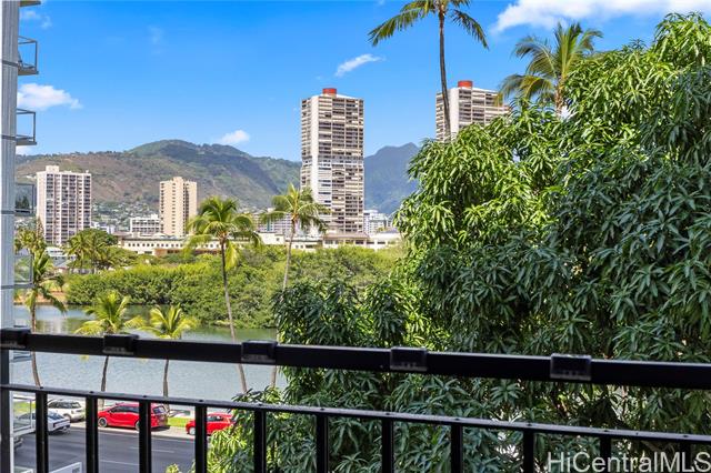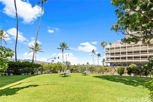 Corner end residence in Seaside Suites overlooking the Ala Wai canal with mountain and golf course view. This 1-bedroom unit features granite counter tops, dishwasher, self-cleaning oven, updated bathroom, and engineered wooden floors. Relax on your large lanai or in the private garden area. There is coin operated laundry next to your unit and on every floor. A secured pet friendly building with 1 assigned covered parking. Located in the heart of Waikiki surrounded by world class shopping and dining with Centennial Park across the way. Minutes to Waikiki Beach and Kapiolani Park where you can enjoy the best of Oahu's outdoor lifestyle.