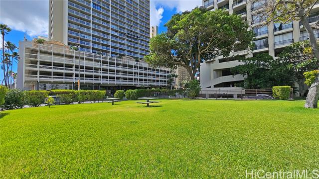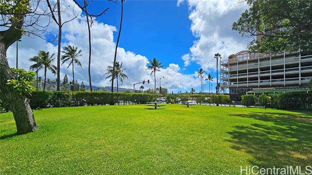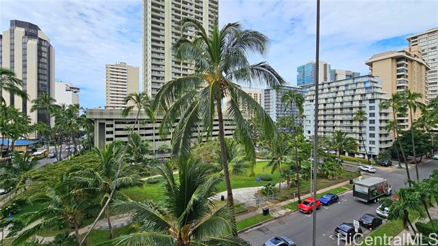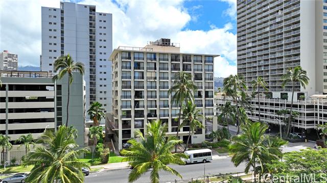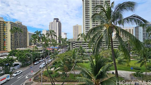 Experience the perfect blend of island tranquility and urban convenience in this beautifully maintained, fee-simple studio. Overlooking a lush green park and just two blocks from world-famous Waikiki Beach, this home features a freshly painted interior, and a functional kitchen with a breakfast bar. Enjoy effortless living in a secure, well-managed building where the HOA fee conveniently covers electricity, central AC, water & sewer, TV-cable and trash removal. This unit also includes a rare, assigned covered parking stall - a premium for the area. Ideally located minutes from Ala Moana, Kapiolani Park, and Downtown Honolulu, this property is a standout choice for a primary residence, vacation getaway, or investment. Own your piece of paradise in Honolulu's most sought-after location. Schedule your showing today!
