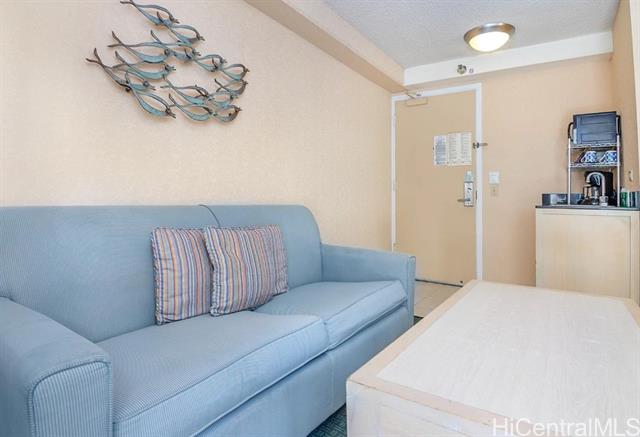 Aqua Aston Hotels & Condo manages this unit. Aloha Surf zoning will allow you to do both short term or long term rent or for personal occupation for unlimited time. The Aloha Surf has a fire sprinkler system installed throughout the property (Including inside all residential units). City / Mountain / Canal view from Lanai. Unit has queen size bed and sofa (sofa / bed ). Monthly maintenance fee ( $ 694.36) all utilities: cable television, electricity, internet, water, hot water, phone, sewer. The large & open air lobby connects to a fitness area and relaxing pool area with cabanas and barbecue grill. Guests parking , or park on a streets. PLACE IS AVAILABLE FOIR PRIVATE SHOWING SARTUDAt 11/22/2025 1-3 pm