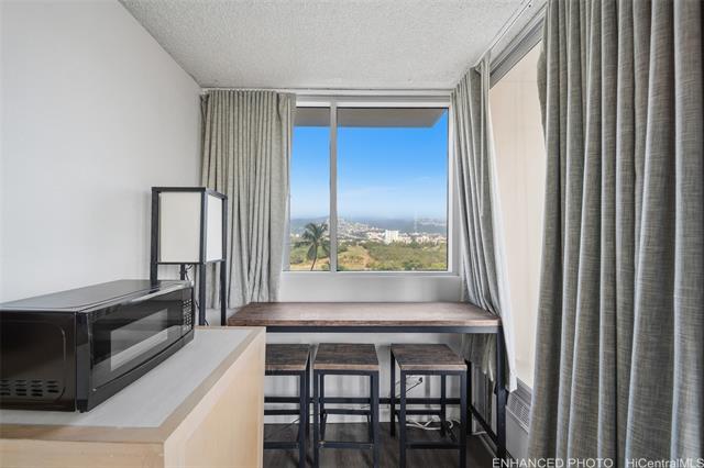 Cozy corner end unit that has been beautifully updated with newer vinyl flooring, drapes, AC unit, and comes fully furnished. Lanai area overlooking mountain views, Ala Wai Golf Course and Waikiki. Fee Simple, ready to use as a legal short term rental unit or reside for long term use. New owners may elect to keep in condotel rental pool that is managed by Aqua Aston, or can be privately managed on their own. Close proximity to restaurants and shops, and Waikiki Beach. Maintenance fee covers utilities; electricity, cable TV, internet, phone, water, sewer, hot water.