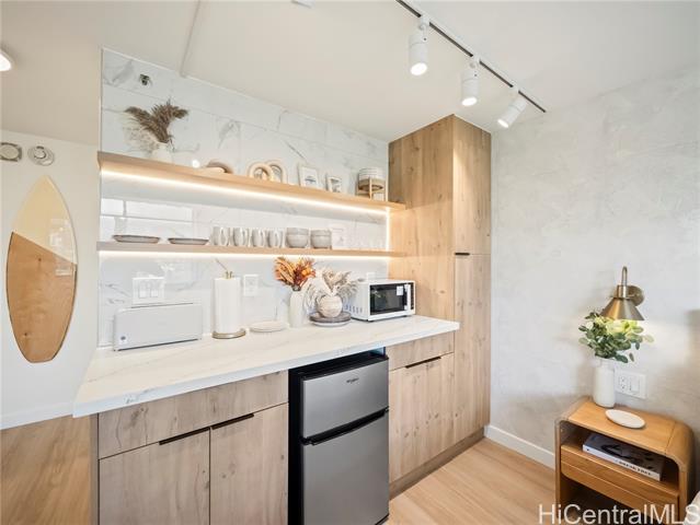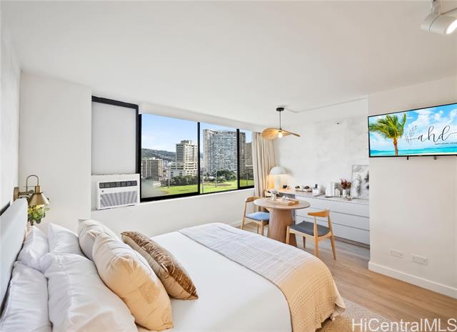 Turnkey short-term rental in Hawaiian Monarch — fully renovated with upscale modern finishes and a bright, airy feel. Enjoy peaceful canal and Ala Wai Golf Course views from the preferred quiet side of the building. Prime location near Waikiki Beach, Fort DeRussy, shopping, dining, and transit. Resort-style amenities include pool, BBQ area, hot tub, and fitness center. Ideal as a move-in-ready vacation rental or island retreat.