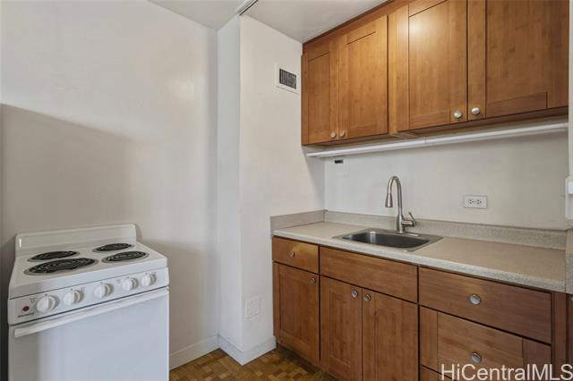 Best-priced fee simple studio in Waikiki ,fully hurricane insured! This spacious studio features a full kitchen, private lanai with great cross-breezes. Located in The Rosalei, a secure and well-maintained building with a pool, community laundry, and on-site management. Major building upgrades include completed full plumbing and re-pipe, exterior painting and spalling repairs, upgraded water heating systems, and modernized elevators. Maintenance fees include electricity, cable, internet, water, sewer, and hot water. Close to beaches, parks, dining, shopping, and the Honolulu Zoo. Parking available nearby.